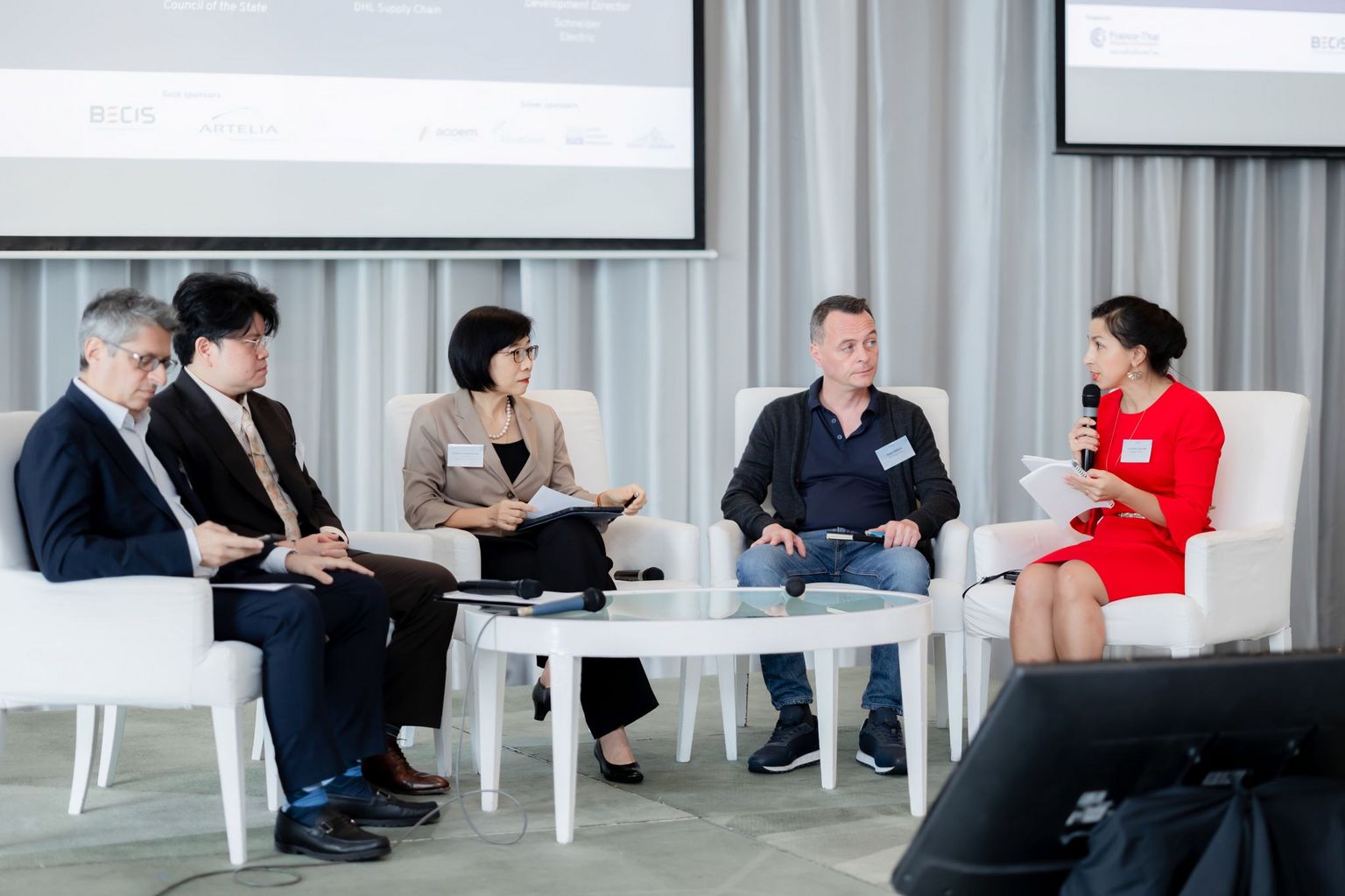 The first session featured a panel discussion on industry trends, moderated by Anh-Hà de FOUCAULD (DELEGUE). Panelists included Duangjai Asawachintachit, Sébastien LAURENTKraisorn Rueangkul, and Paul Abbott. Following this, the stage was set for a dynamic discussion on CEO Perspectives moderated by Florian Blin. Industry leaders Siwaraya Sritirat, Mongkhon Tangsiriwit, Marty S., and Srihanath Lamsam shared their visionary strategies and ambitious goals for the future.