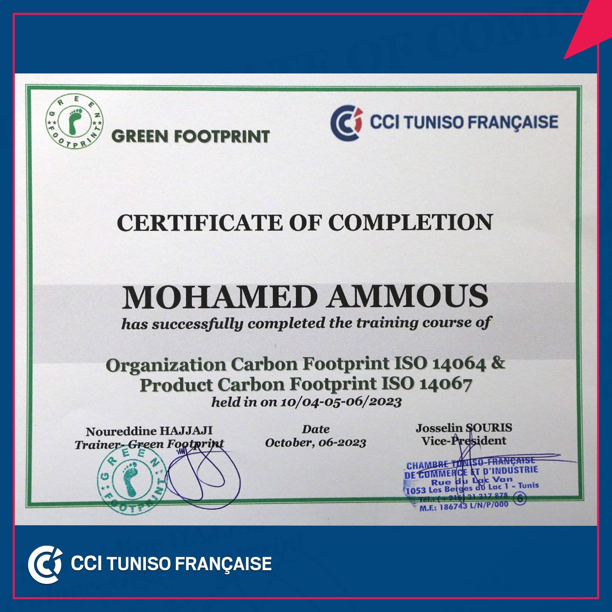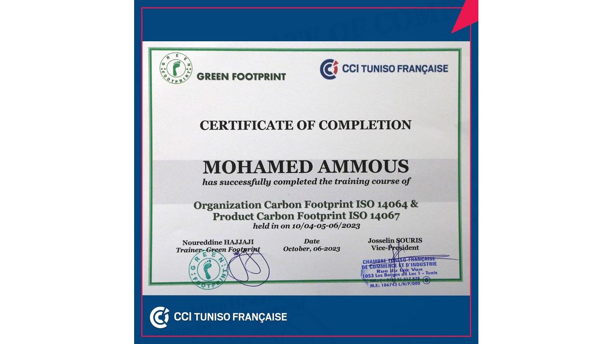 La Chambre de Commerce et d’Industrie Tuniso Française CCITF clôture avec succès la 4ème session de formation sur le Bilan Carbone et l'Empreinte Carbone.
