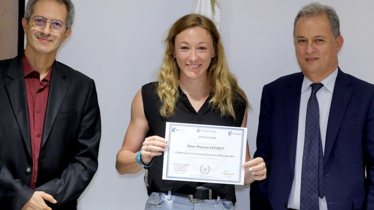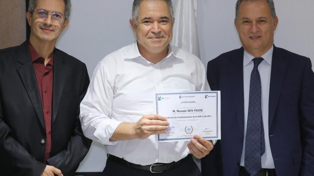 Cette session, qui s’est déroulée sur trois jours (18, 19 et 20 septembre 2023), a réuni 14 cadres d’entreprise. À cette occasion, les participants ont reçu leurs certificats de formation. La formation a été dispensée par Monsieur Ziad KADHI, du Groupe Key Values, un acteur local spécialisé dans l’accompagnement des entreprises en matière de changement et un expert en RSE & Gouvernance.
