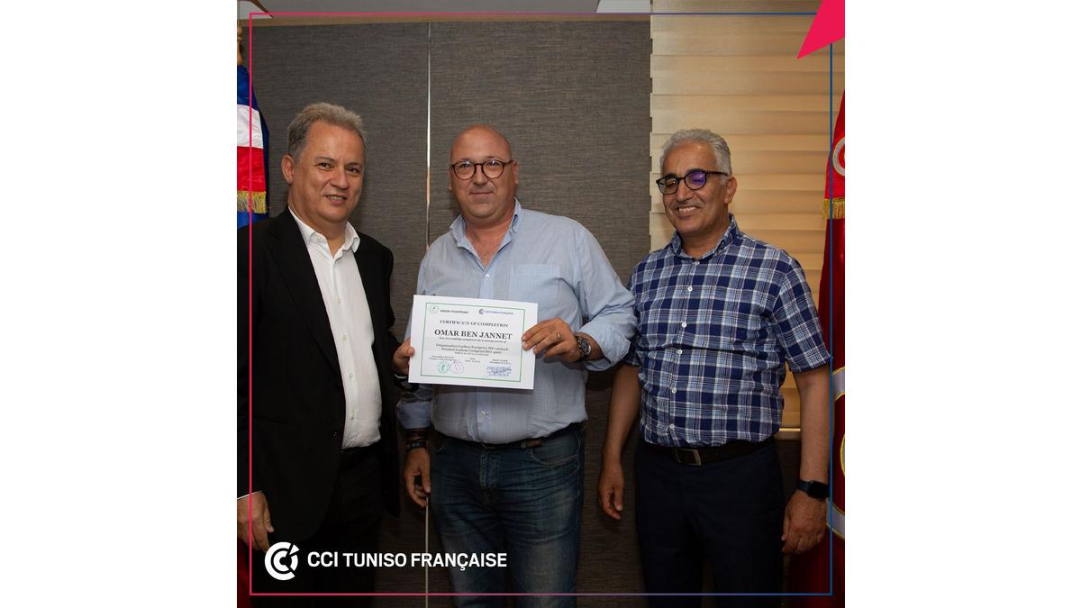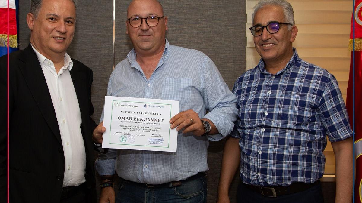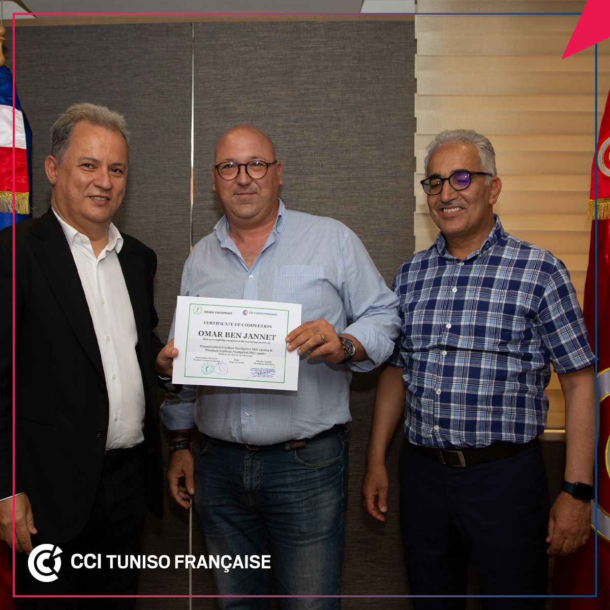 M Khelil Chaibi, Président de la CCITF a procédé, le 16 juin 2023, à la clôture de la troisième session de formation organisée par la CCITF, du 14 au 16 juin 2023, dédiée au Bilan Carbon et l'empreinte Carbone. Cette session a enregistré la participation de 15 cadres d'entreprise. M Khélil Chaibi a procédé, à cette occasion, à la remise des certificats aux participants de cette formation qui a été assurée par M Noureddine HAJJAJI, Expert Senior Environnement chez Green Footprint.