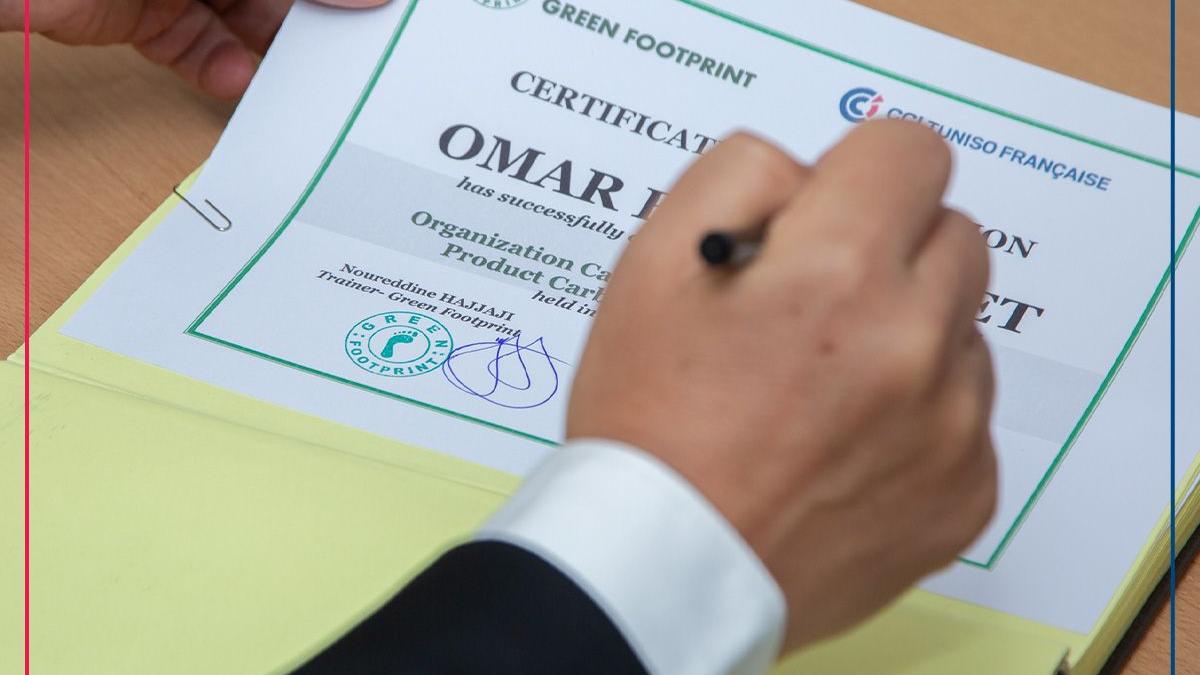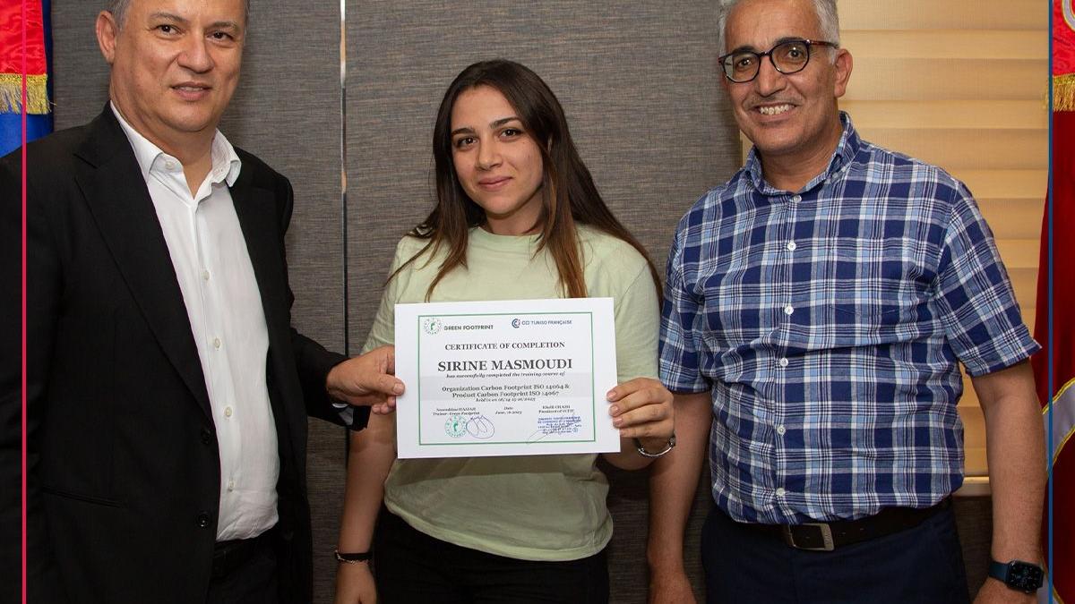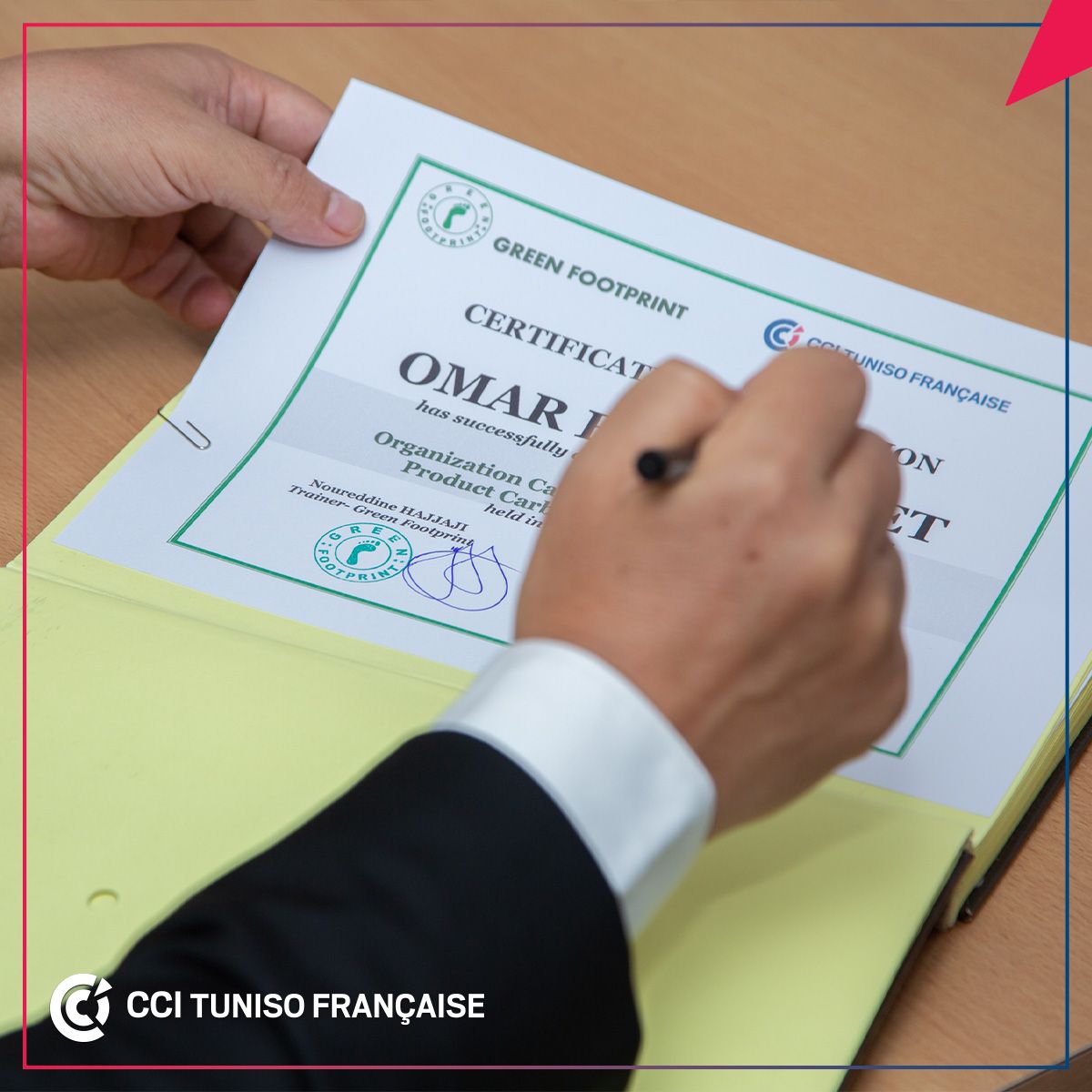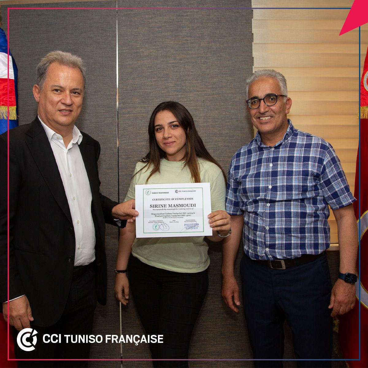 M Khelil Chaibi, Président de la CCITF a procédé, le 16 juin 2023, à la clôture de la troisième session de formation organisée par la CCITF, du 14 au 16 juin 2023, dédiée au Bilan Carbon et l'empreinte Carbone. Cette session a enregistré la participation de 15 cadres d'entreprise. M Khélil Chaibi a procédé, à cette occasion, à la remise des certificats aux participants de cette formation qui a été assurée par M Noureddine HAJJAJI, Expert Senior Environnement chez Green Footprint.