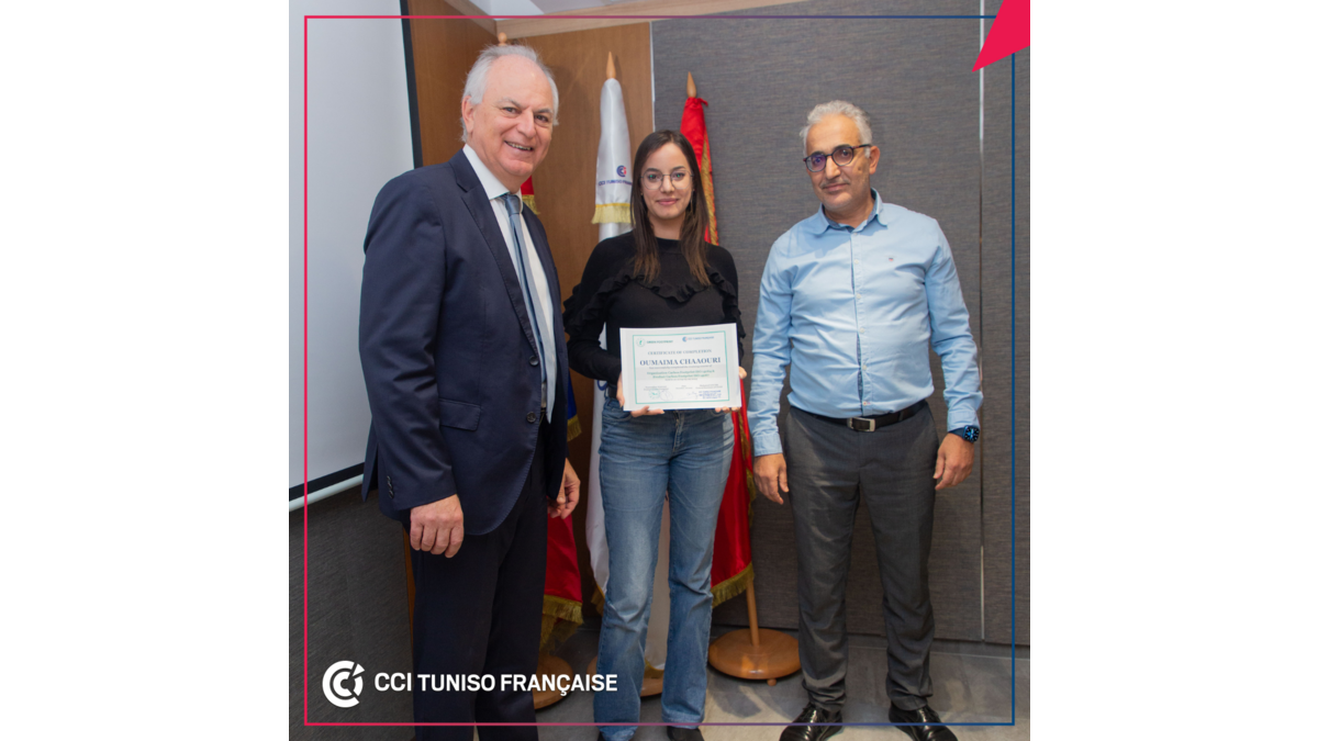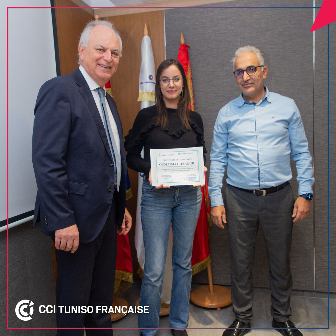 La 6ème session de formation organisée par la Chambre de Commerce et d’Industrie Tuniso Française CCITF sous le thème « Bilan et empreinte Carbone » a été clôturée le mercredi 6 décembre 2023. Cette session, d'une durée de trois jours, a enregistré la participation de 17 cadres d'entreprises. M. Mohamed LOUZIR, Secrétaire Général de la CCITF a procédé, à cette occasion, à la remise des certificats aux participants de cette formation qui a été assurée par M. Noureddine HAJJAJI, Expert Senior Environnement chez Green Footprint. Ces sessions de formation ciblées organisées par la CCITF se poursuivront et se diversifieront en 2024 et ce en raison du grand intérêt manifesté par les entreprises adhérentes.