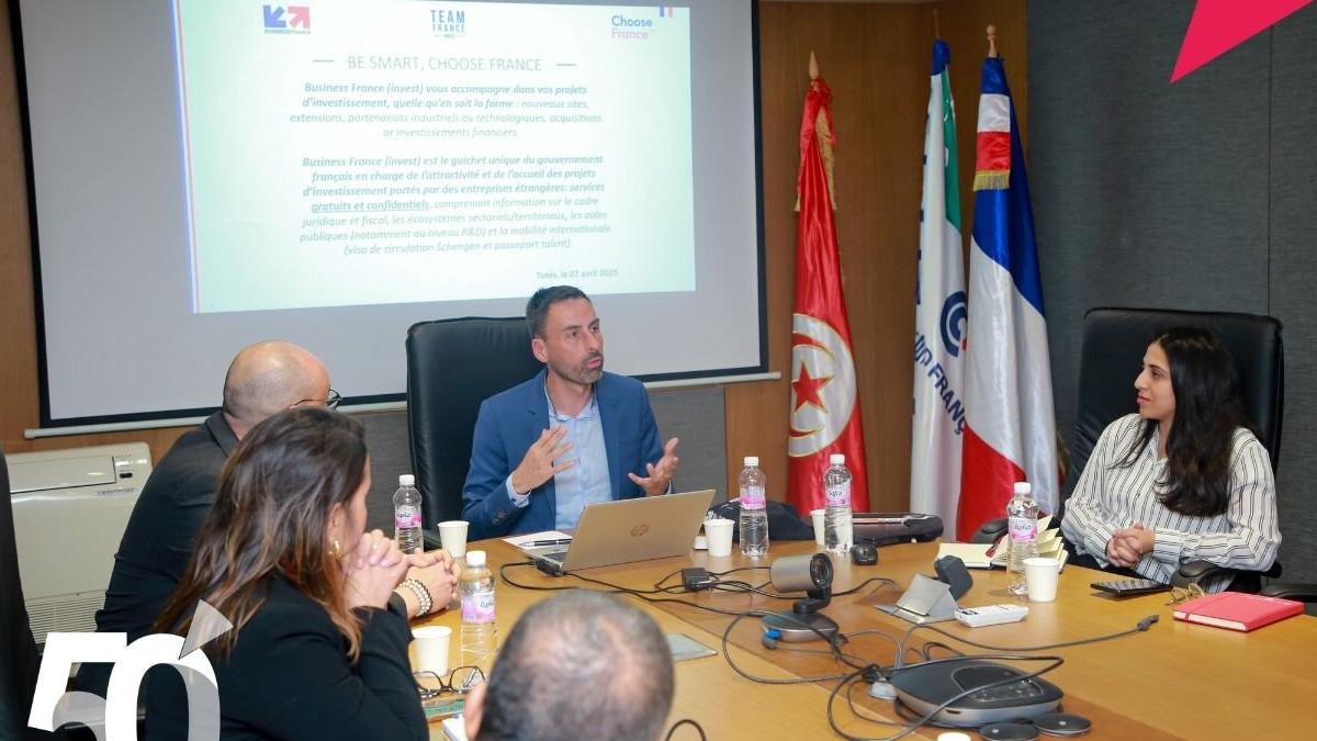 La Chambre de Commerce et d'Industrie Tuniso-Française a eu le plaisir d’organiser, le 7 avril 2025 au siège de la CCITF, une rencontre dédiée à ses adhérents, en partenariat avec l’agence RisingSUD, représentée par M. David LAURENT, International Project Manager Industry & Tech et Business France Tunisie, représentée par M. Walid BALTAGI, Chargé d’affaires Invest.