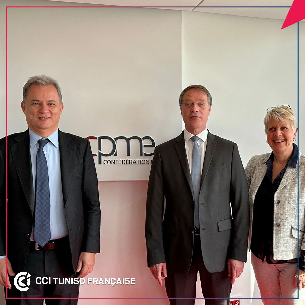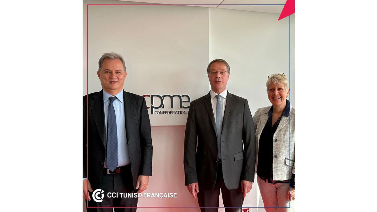 Rencontre de Khelil Chaibi, Président de la CCITF, avec François Asselin, Président de la CPME nationale et Béatrice Brisson, Directrice des affaires européennes et internationales le 24 mai 2023 à Paris.