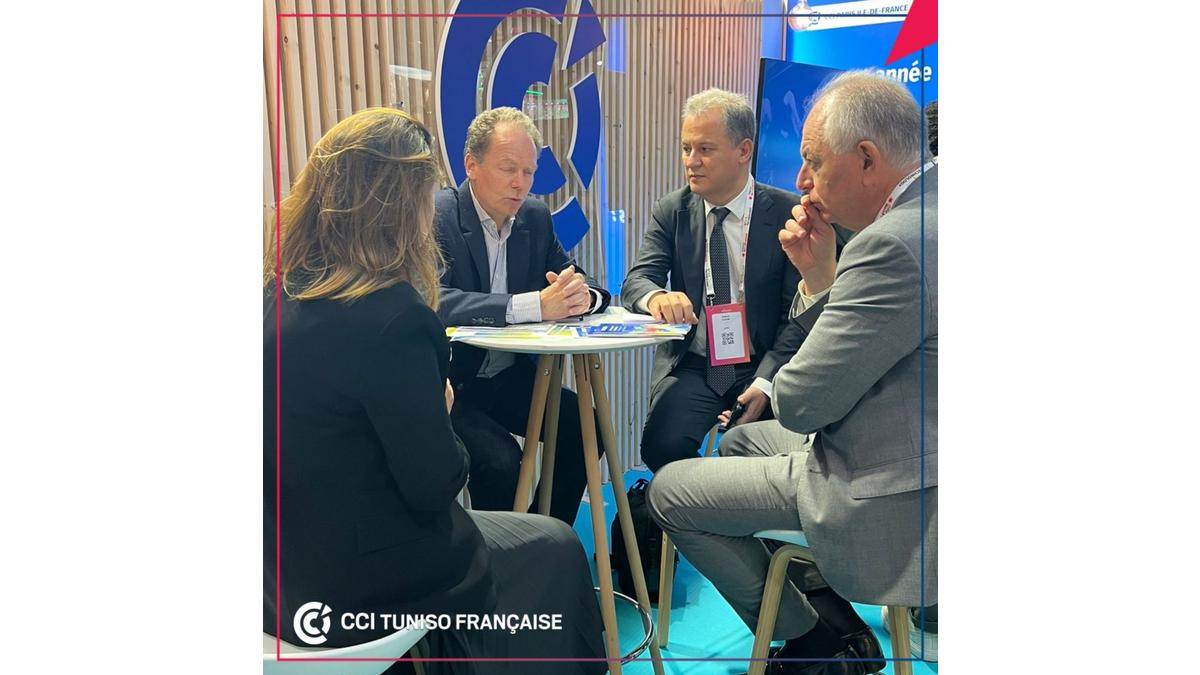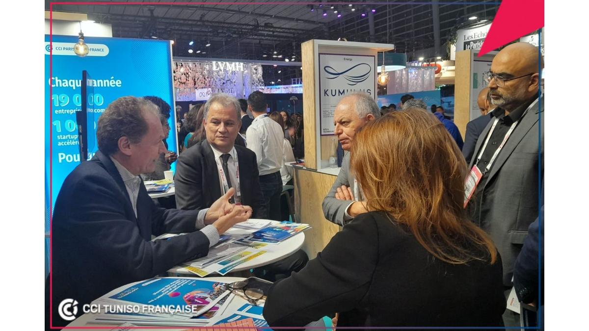 ✔️ Pavillon Chambre de commerce et d’industrie de région Paris Ile-de-France : échanges avec M. Benoît Feytit, Président de la CCI Hauts-de-Seine, M. Patrick RAKITOSON, Président de la CCI Essonne, M. Karim BENTHAMI, Responsable des réseaux d’entreprises, et KUMULUS WATER, une startup tunisienne implantée à Paris.