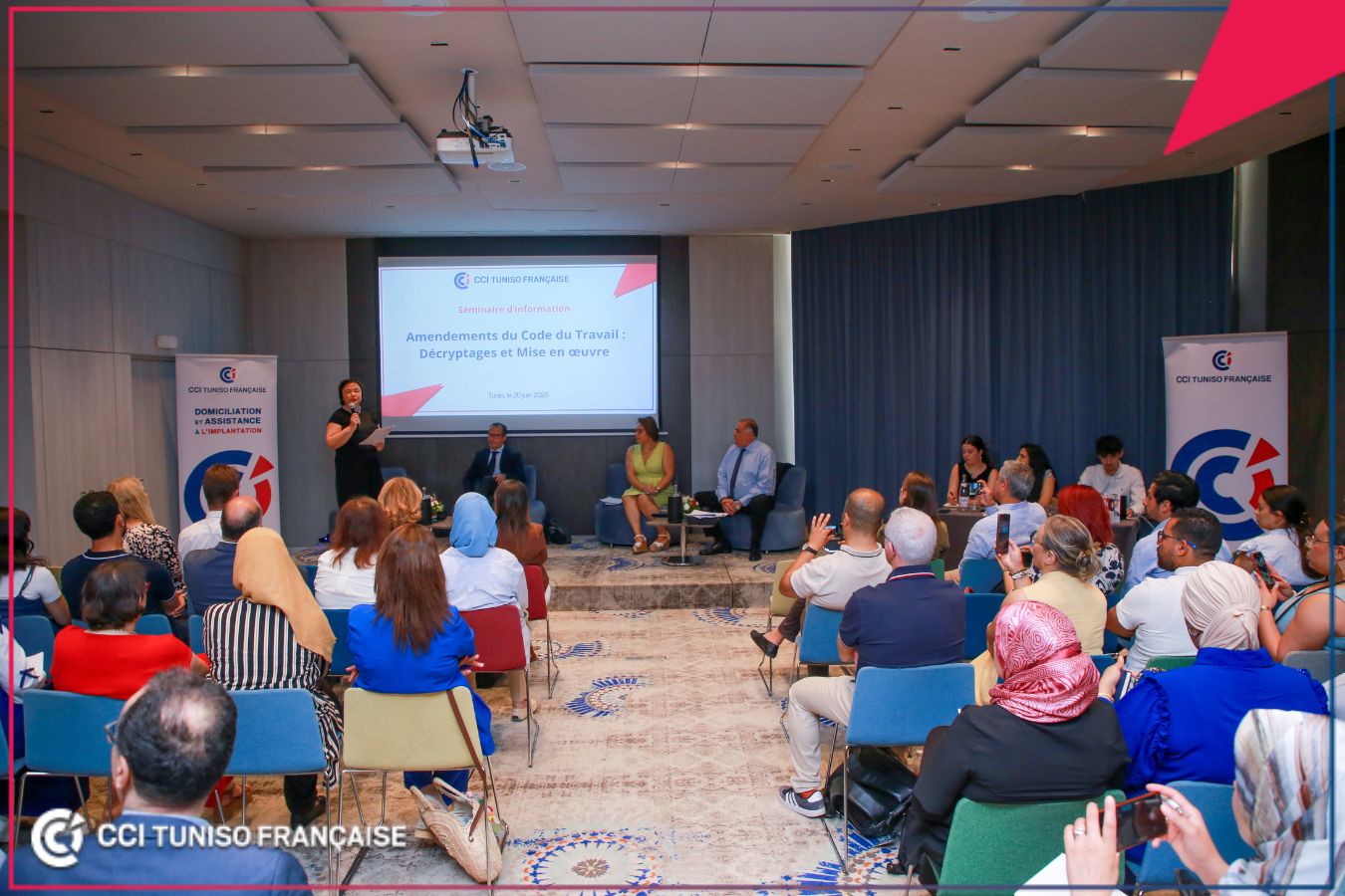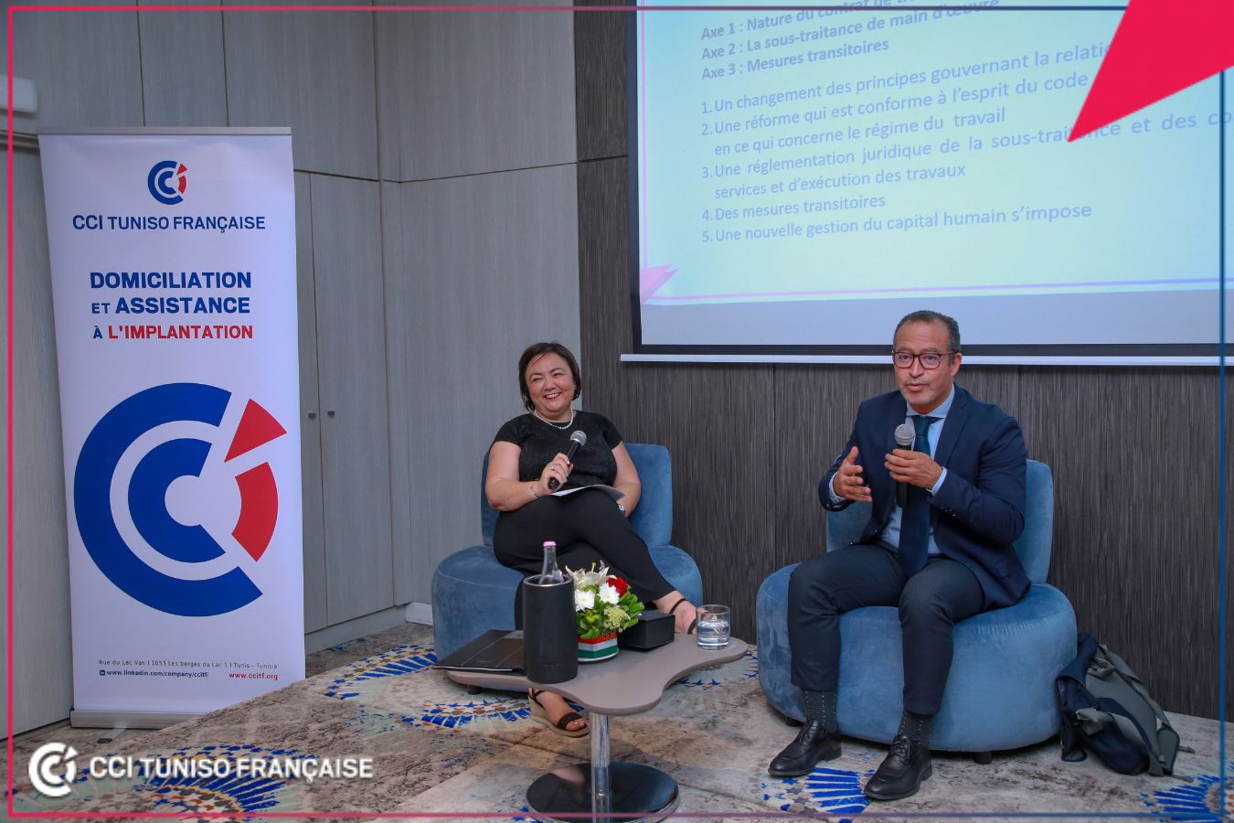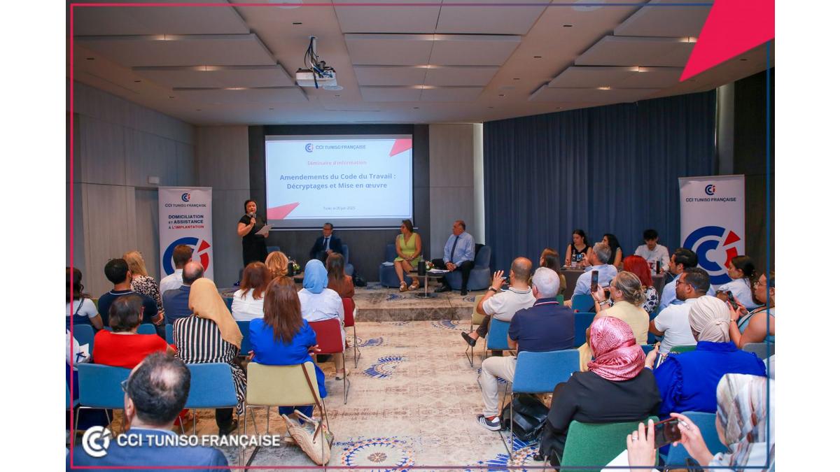 ? Animée par Mme Ines Hallab, Secrétaire Générale Adjointe de la CCITF, cette rencontre a réuni un panel d’experts de renom : Me ????? ????????, Avocat à la Cour de cassation, M. Slim ABDELJELIL سليم عبد الجليل, Juriste et Consultant et Mme Samia Ben Abdelhamid, Directrice RH Groupe et Membre de la Commission Formation et Emploi de la CCITF.
