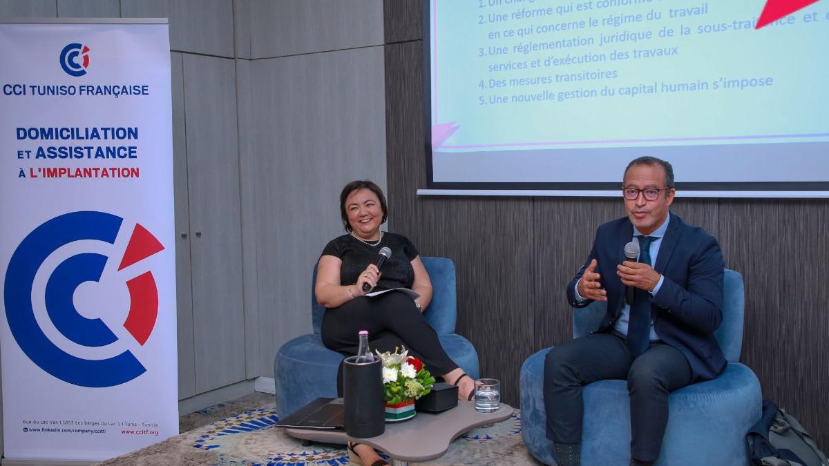 💬 Animée par Mme Ines Hallab, Secrétaire Générale Adjointe de la CCITF, cette rencontre a réuni un panel d’experts de renom : Me 𝗘𝗹𝘆𝗲𝘀 𝗠𝗔𝗟𝗢𝗨𝗖𝗛𝗘, Avocat à la Cour de cassation, M. Slim ABDELJELIL سليم عبد الجليل, Juriste et Consultant et Mme Samia Ben Abdelhamid, Directrice RH Groupe et Membre de la Commission Formation et Emploi de la CCITF.