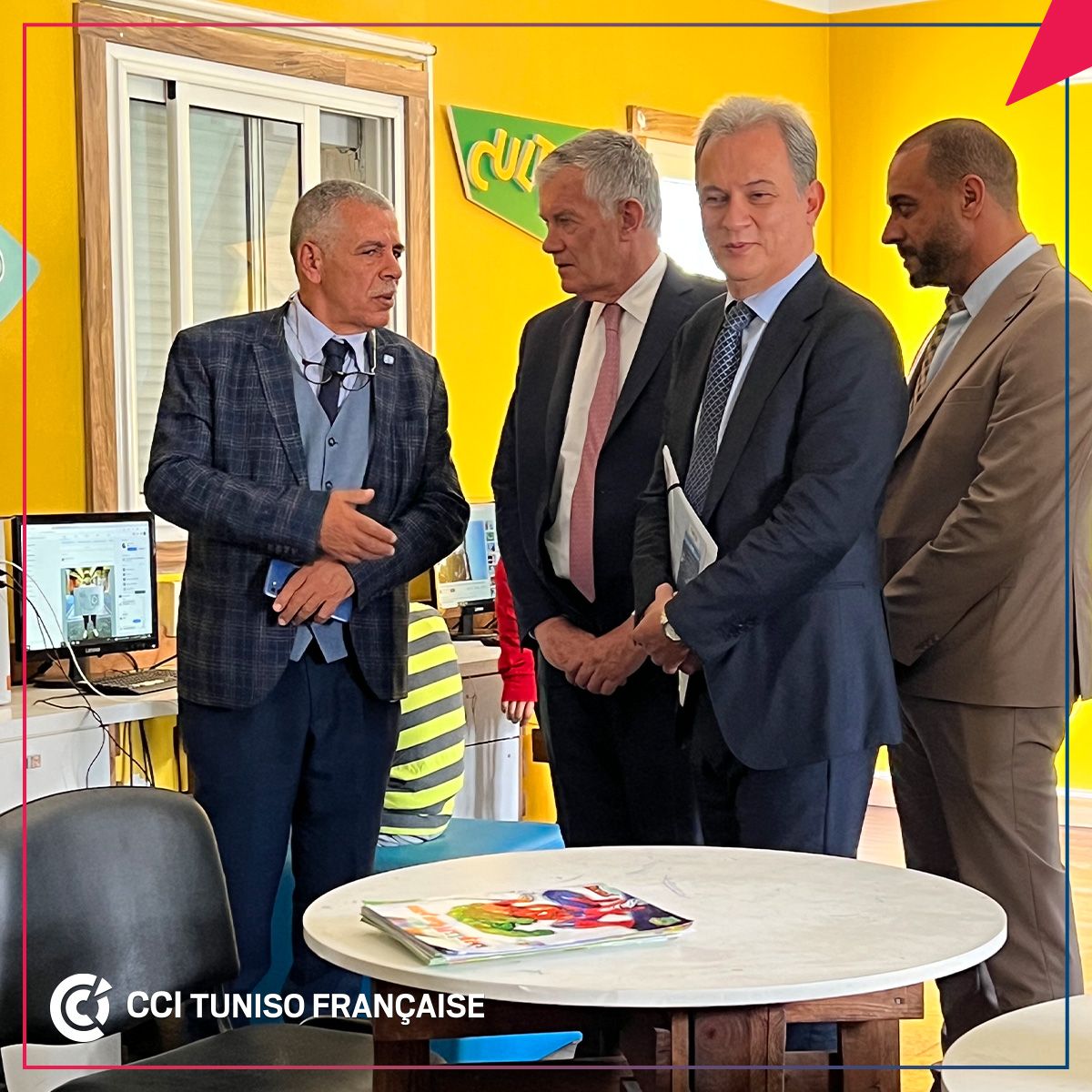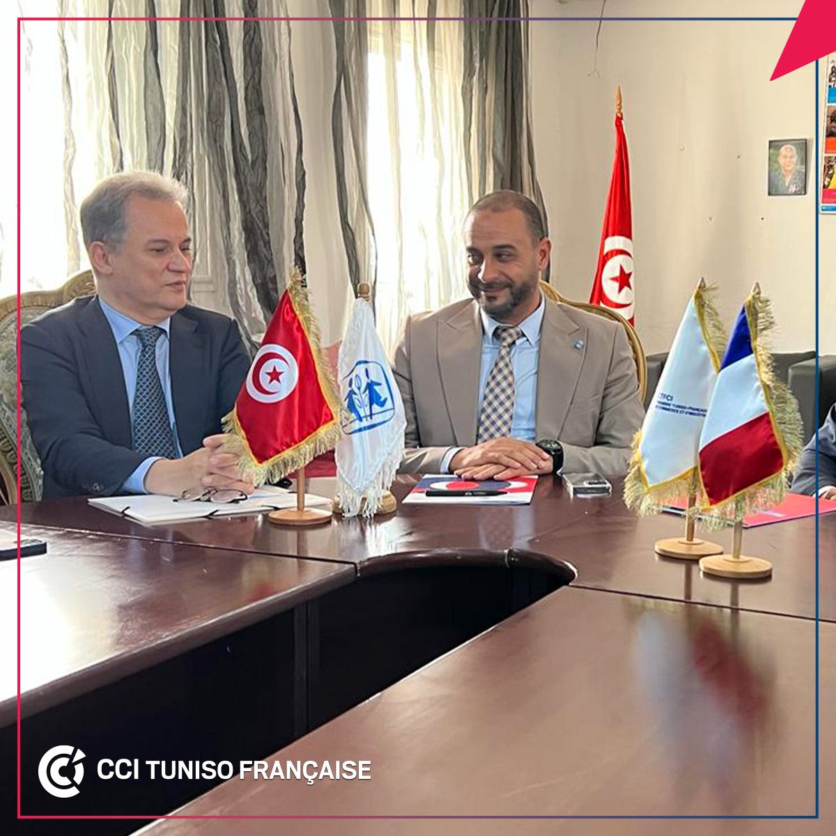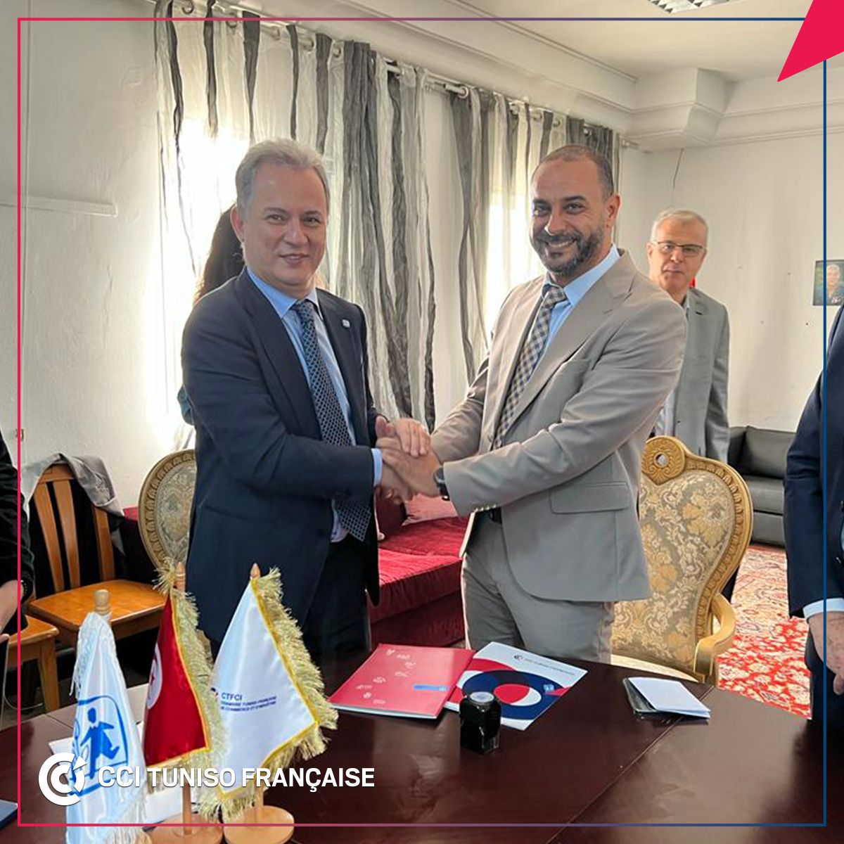 En présence de M. André_Parant, Ambassadeur de France en Tunisie, M. Khelil Chaibi, Président de la CCITF et Mohamed_Megdiche, Président de l’Association Tunisienne des villages d’enfants SOS_Gammarth, ATVESOS, ont signé, le vendredi 31 mars 2023, une convention de « parrainage familiale et de renforcement des relations ».