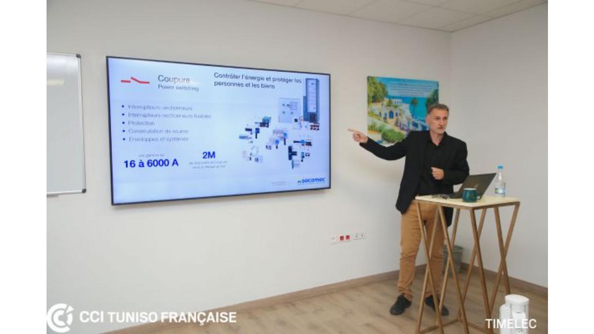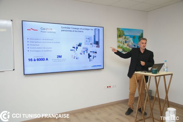 1️⃣ TIMELEC, filiale de Socomec Group spécialisé dans la fabrication des équipements électriques avec forte expertise dans les applications d'énergie critique. TIMELEC emploie 600 personnes et prépare son extension sur un nouveau site à El Mghira.
