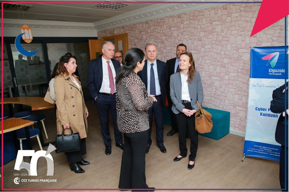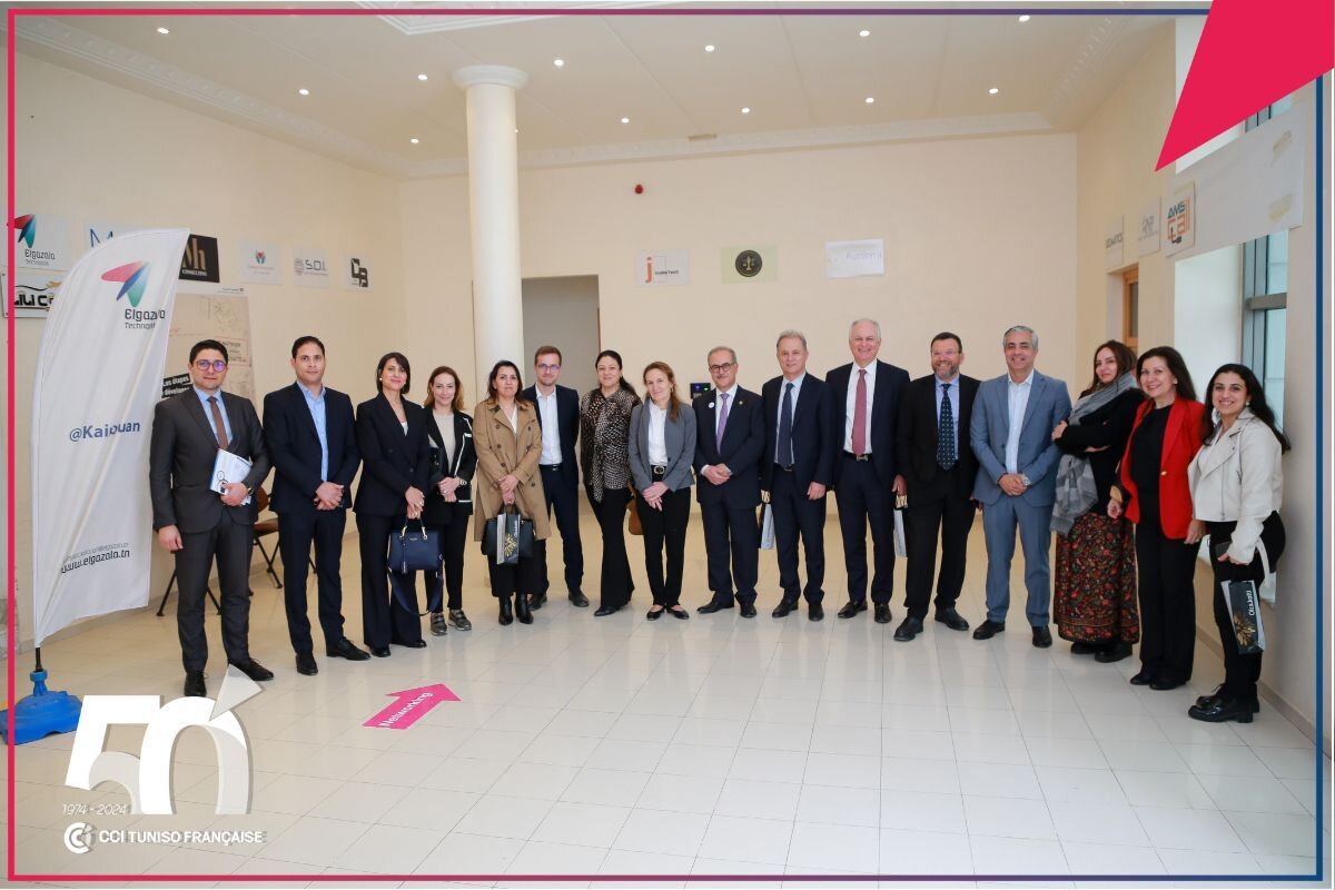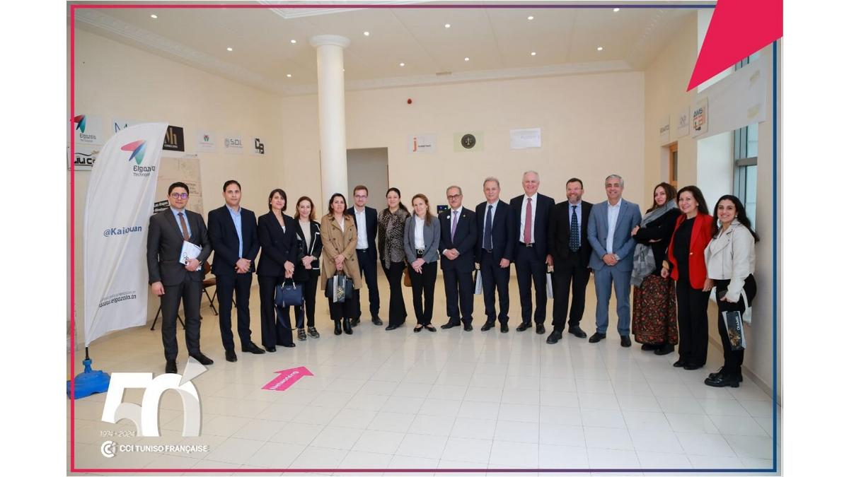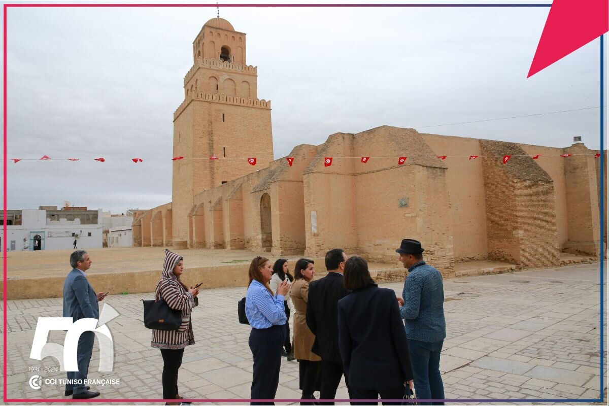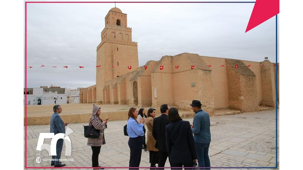 ? La Chambre de Commerce et d'Industrie Tuniso-Française a conduit, le mercredi 16 avril 2025, une délégation pour une visite d'entreprises à Kairouan, accompagnée de Son Excellence Mme. Anne GUÉGUEN, Ambassadrice de France en Tunisie, M. Khelil CHAIBI, Président de la CCITF, M. Titouan GARNERIN, Adjoint du Chef du Service Économique de France en Tunisie, des membres du Comité Directeur de la chambre ainsi que des partenaires et sponsors.