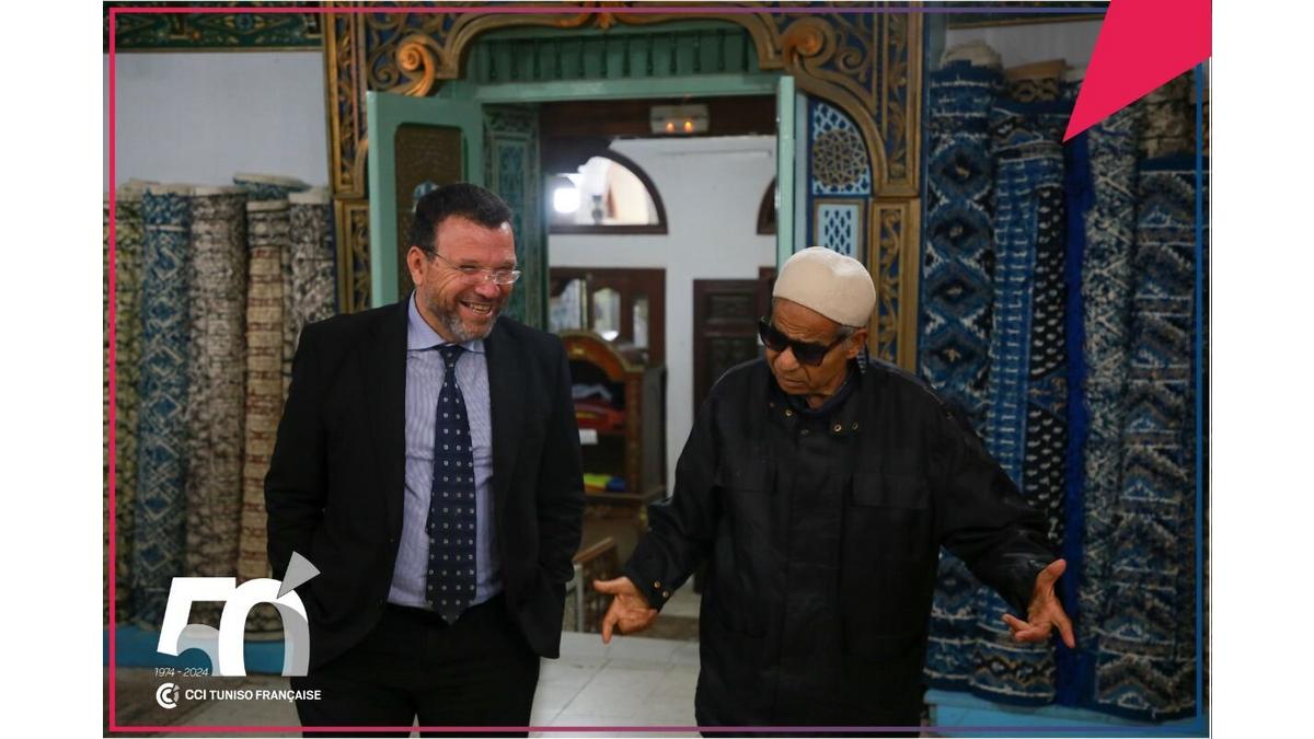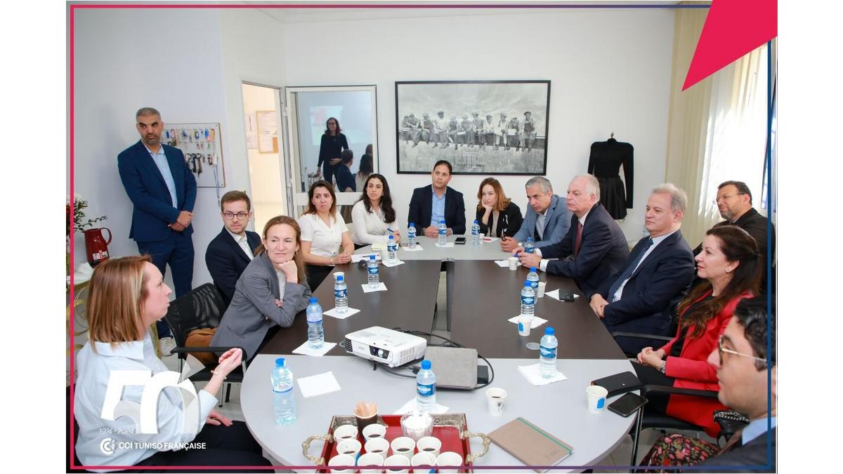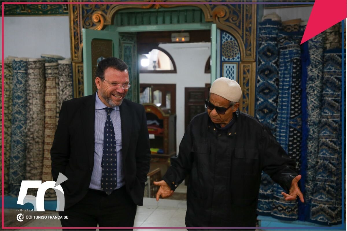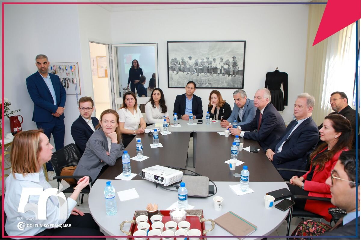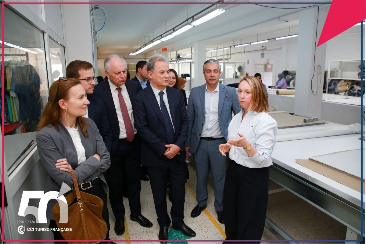 ? La Chambre de Commerce et d'Industrie Tuniso-Française a conduit, le mercredi 16 avril 2025, une délégation pour une visite d'entreprises à Kairouan, accompagnée de Son Excellence Mme. Anne GUÉGUEN, Ambassadrice de France en Tunisie, M. Khelil CHAIBI, Président de la CCITF, M. Titouan GARNERIN, Adjoint du Chef du Service Économique de France en Tunisie, des membres du Comité Directeur de la chambre ainsi que des partenaires et sponsors.