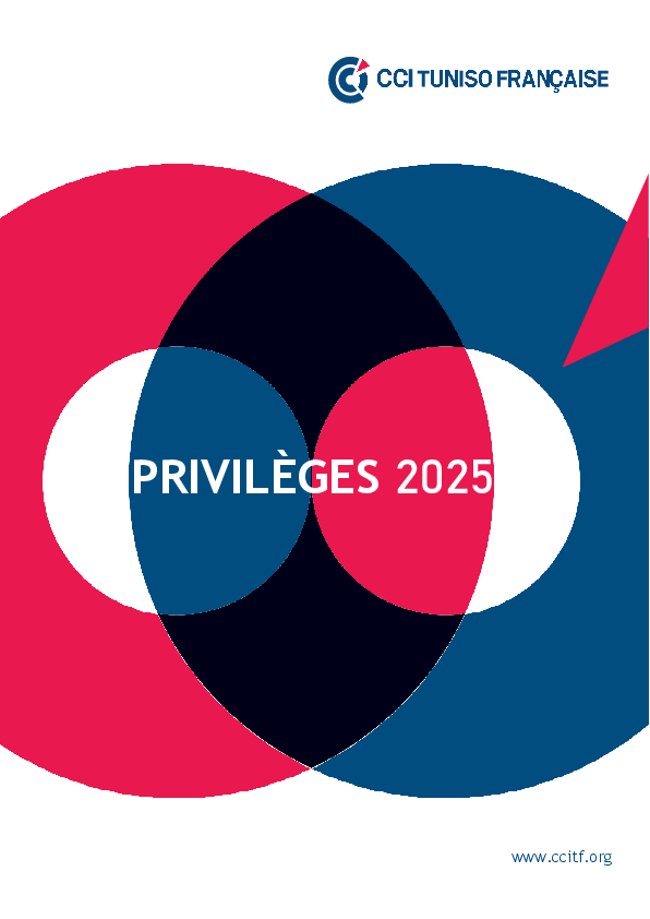 En tant que membres de la CCI Tuniso-Française, vous bénéficiez des avantages de la carte Privilèges (tarifs réduits sur les hôtels, services de location de voitures, des adhérents aux services des adhérents, etc.).